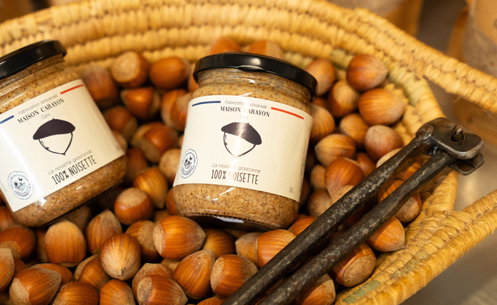 La Maison Carayon propose également des noisettes grillées nature, au piment d’Espelette ou en coque, ainsi qu’une gamme de pâtes à tartiner élaborées à partir de sa production : la 100 % noisette, le Praliné et le Choco-Praliné.